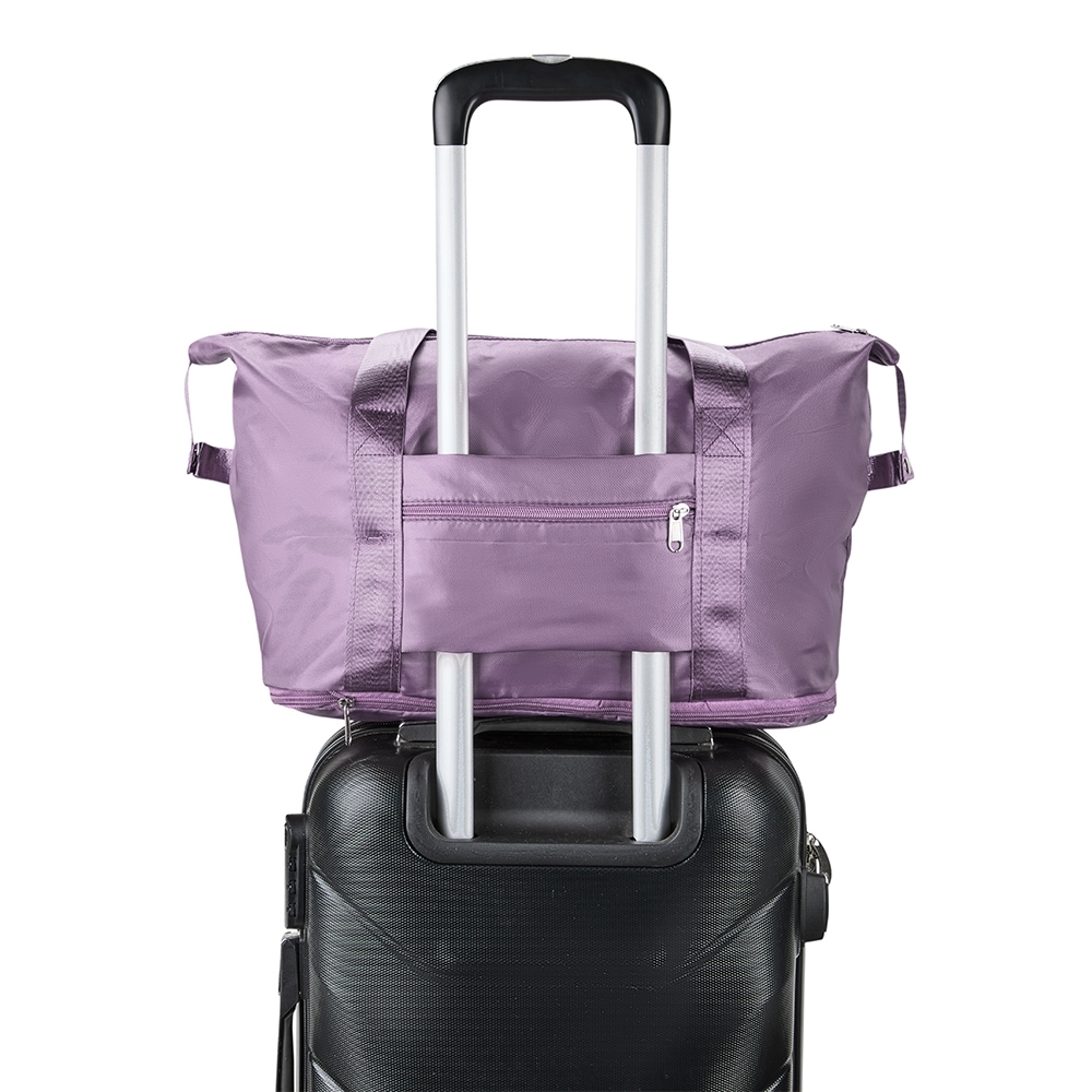 Descrição: Bolsa esportiva em poliéster resistente à água com compartimento expansível que, quando aberto em zíper, aumenta a capacidade máxima da bolsa para até 36 litros. Possui compartimento interno com bolso organizador, além de bolso externo com área para encaixe em malas de viagem.