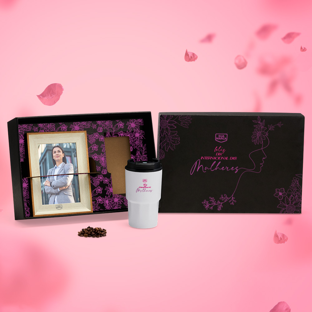 Sugestão de PersonalizaçãoUma gravação a Laser no copo e porta-retrato; uma gravação em Silk/Digital na tampa da caixa.